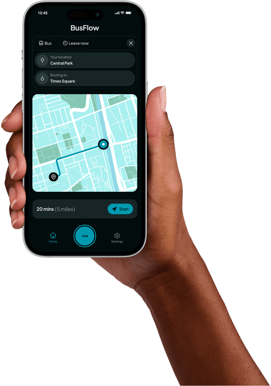 The Bus Tracker App was designed to solve a common urban problem: uncertainty around public bus arrivals. The goal was to provide real-time tracking, reduce commuter frustration, and create a more organized, efficient experience for daily travelers.